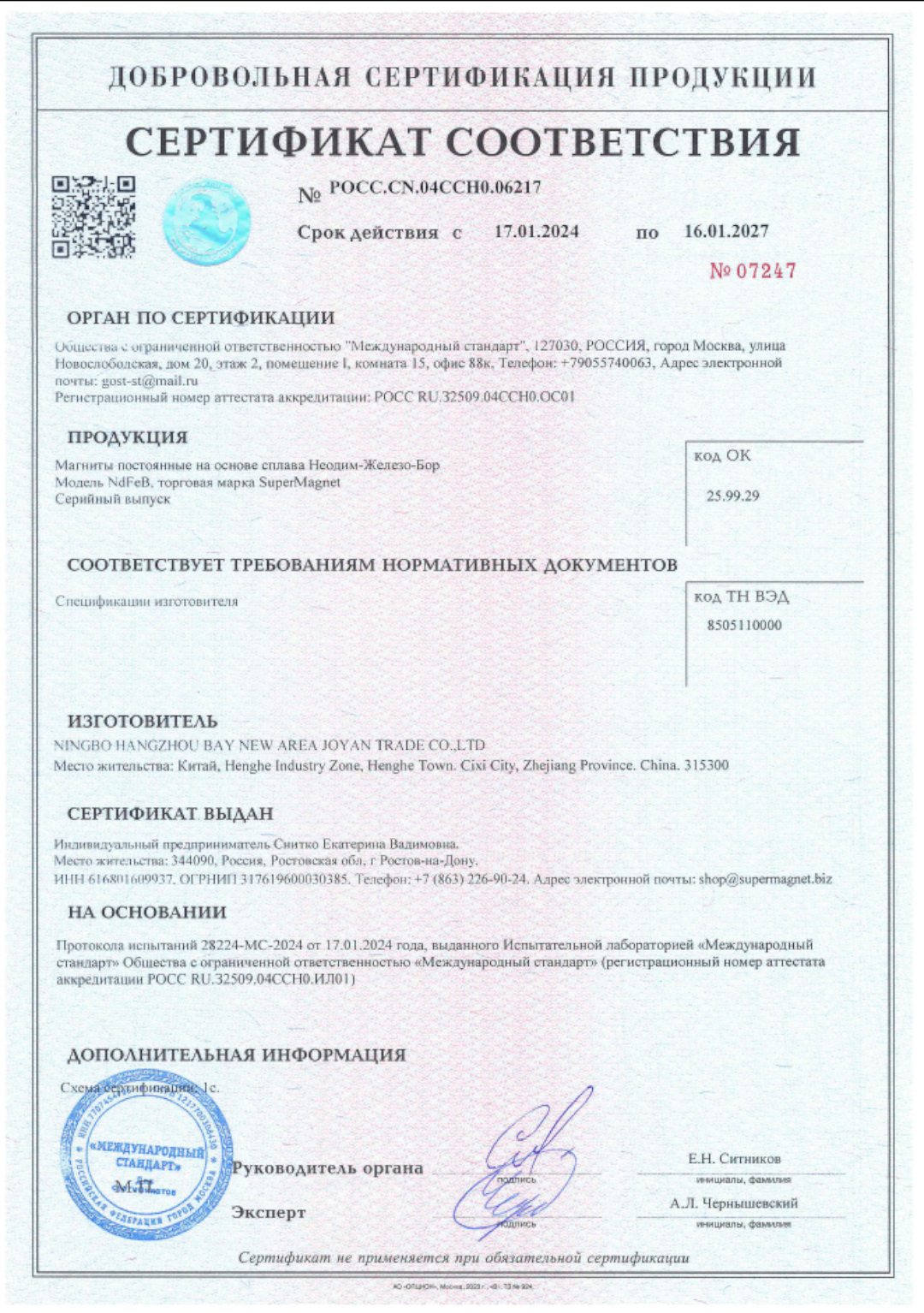 Наши магниты прошли добровольную сертификацию ГОСТ-Р
