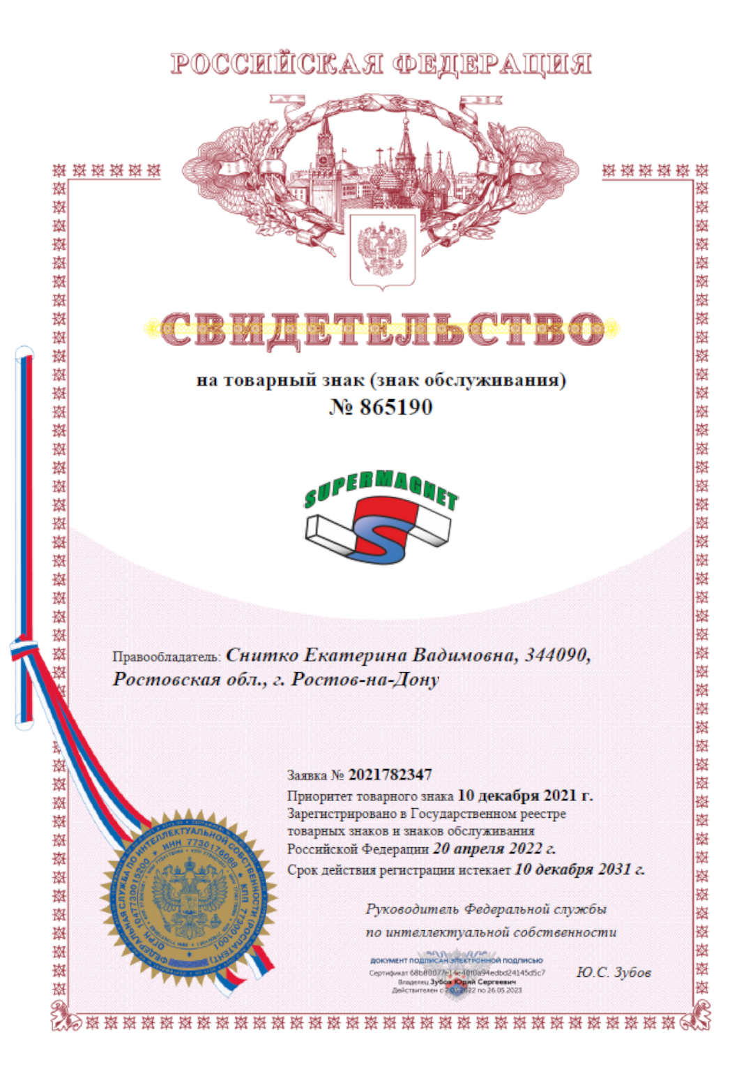 Товарный знак SuperMagnet имеет свидетельство о регистрации